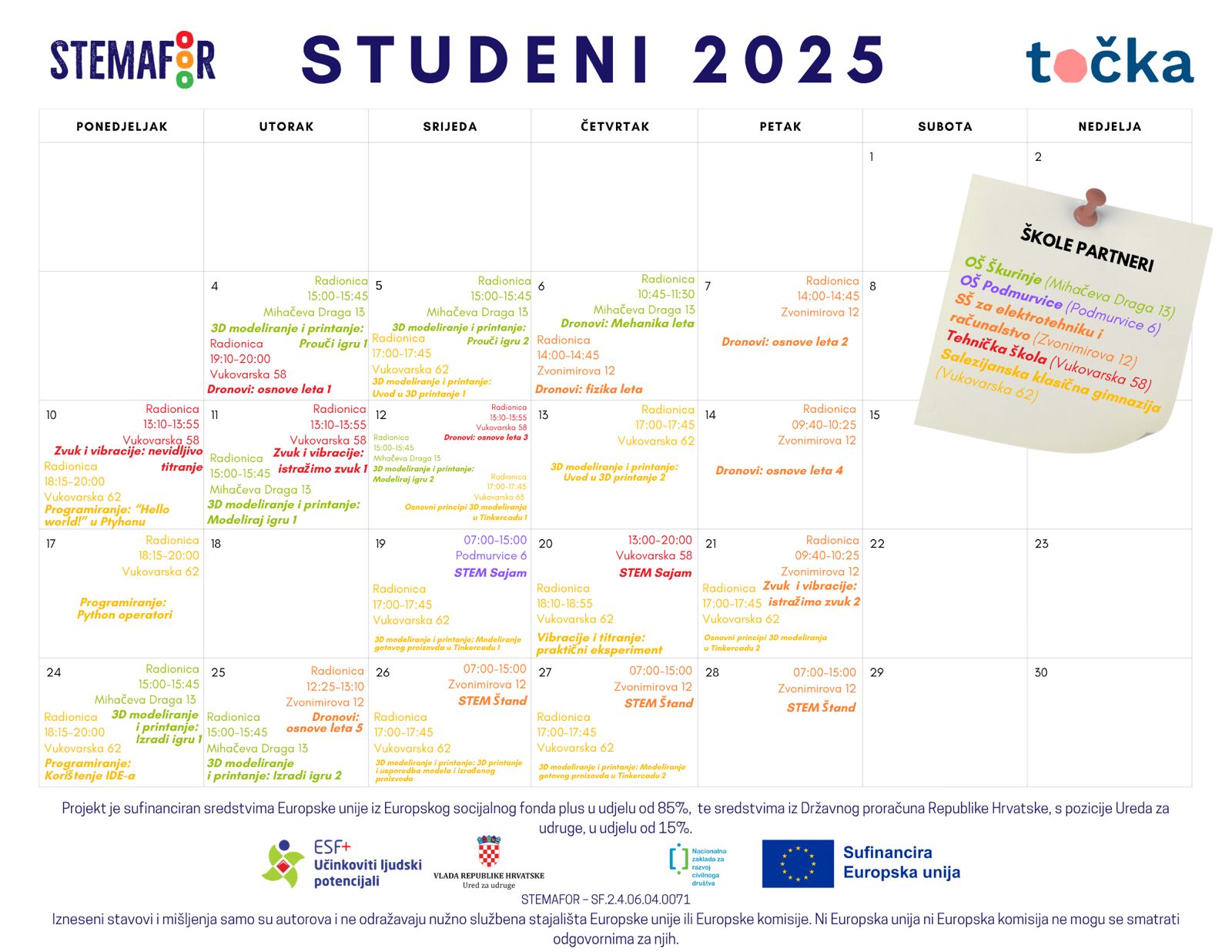 Donosimo vam kalendar radionica za mjesec Studeni 2025. godine.